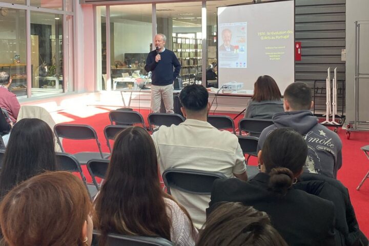 Saint-Etienne : La dernière conférence sur le 25 Avril de l’Université Jean Monnet avec Yves Léonard Victor da Silva·13 Abril, 2024Yves Léonard, historien spécialiste de la culture portugaise, a tenu une conférence à l’Université Jean Monnet de Saint-Étienne, centrée sur la Révolution des Œillets. Cette conférence marquait la clôture des événements organisés par l’université sur le 25 avril 1974. Au...Comunidade·0 Comentários·1 mins read·1