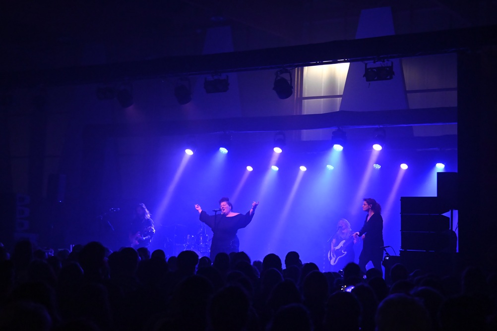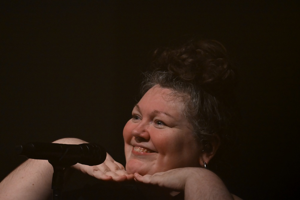 Les chansons s’enchaînent. Entre chacune d’elles, la chanteuse distille des messages, souvent avec humour – beaucoup d’humour – des mots sur des maux, les maux de femmes, majoritaires dans la salle.