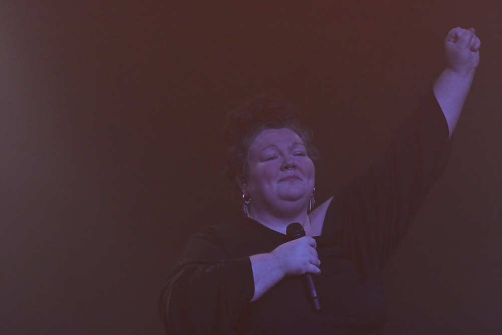 Mathilde interprète ses nouvelles chansons, tirées de son album «Nuit-Jour». Chantée sur scène, pour la première fois… cela parle de l’univers… à capella, elle se lance… À la fin, un léger silence… les applaudissements sont encore plus nourris, le public approuve – ouf ! Une larme brise la carapace de la femme sur scène… à l’image d’autres chansons, le poing levé, là-haut, sur scène, en bas, dans le public. On le fait pour la chanson, pour ce qu’elle revendique, pour ce qu’elles revendiquent.