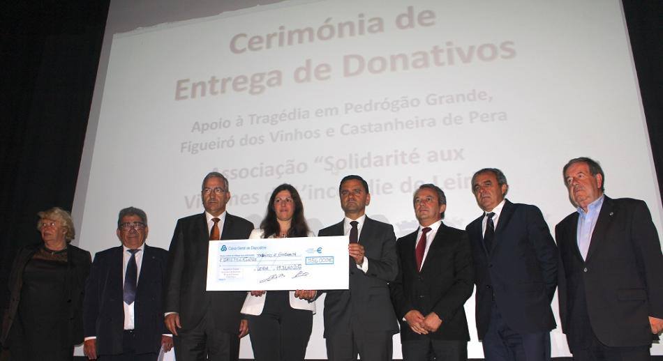Uma delegação franco-portuguesa deslocou-se esta quarta-feira a Leiria para entregar um cheque de 356 mil euros, fruto de uma campanha de recolha de fundos para apoiar as vítimas do incêndio de Pedrógão Grande. A cerimónia teve lugar no Teatro Miguel Franco, em Leiria.
