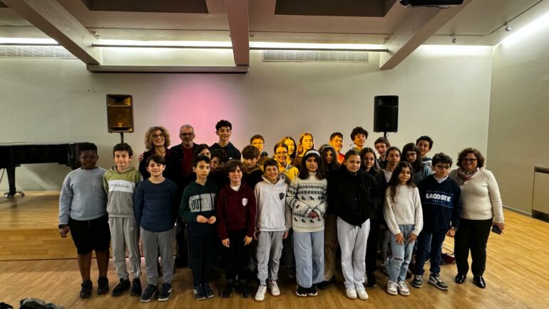 Home Ensino “Histórias Magnéticas” surpreenderam alunos do Liceu internacional de Saint Germain-en-LayeCarlos Pereira·7 Dezembro, 2024Ensino Na passada quarta-feira, dia 27 de novembro, assistimos a um evento intitulado “Histórias Magnéticas” a convite da Coordenação do Ensino. O conto musicado que ouvimos “Não se deixem enganar!” foi escrito por Sérgio Pelágio que também é compositor e guitarrista. Isabel Galvão foi a narradora da história. Este evento decorreu Casa de Portugal André de Gouveia, Cité internationale universitaire de Paris. Ficámos surpreendidos e encantados ao ouvir uma história contada e acompanhada por música. Os sons da guitarra elétrica lembravam-nos um concerto. Com efeito, foi a primeira vez que a maioria de nós assistiu a um espetáculo tão único, onde o Sérgio tocava guitarra elétrica, por sinal, muito especial, pois não tinha “cabeça”. Marcou-nos a forma como a narradora sincronizava as palavras com o som emitido pelo músico e a emoção com que se expressava quando lia, pois a música intensificava a tensão e a atmosfera do conto. Esta obra musicada narra a história de um menino chamado Miguel e descreve várias situações que o protagonista viveu na sua infância, durante o tempo do ditador Salazar, até à data da Revolução do 25 de Abril e à conquista da liberdade. Seguiu-se um momento de interação e de troca de impressões com o autor, que foi algo completamente novo para nós e tornou a experiência ainda mais envolvente e enriquecedora. Achámos particularmente interessante, a forma como o autor foi capaz de criar uma história a partir da sua vivência pessoal, bem real e concreta, a qual impactou bastante a sua vida, assim como a de muitos portugueses que viveram nesta altura. Ficamos a saber que nesta época, a censura proibia a venda de certos livros e de discos em Portugal. Por isso, uma das personagens que mais nos impressionou foi o Senhor Barata que conseguia fornecer os seus clientes da livraria com obras que escondia na cave da sua loja. Esta imersão ajudou-nos a compreender como foi difícil viver durante a ditadura em Portugal. Salientamos, igualmente, as atividades realizadas com as caixas que foram fascinantes. Através delas, conseguimos visualizar melhor os acontecimentos da história, ordenando-os por ordem cronológica. Foi uma experiência muito enriquecedora e que, certamente, ficará marcada nas nossas memórias! O nosso muito obrigado à Coordenação do Ensino por esta bela iniciativa. . As turmas de 6ème e de 5ème do Liceu Internacional de Saint Germain-en-Laye
