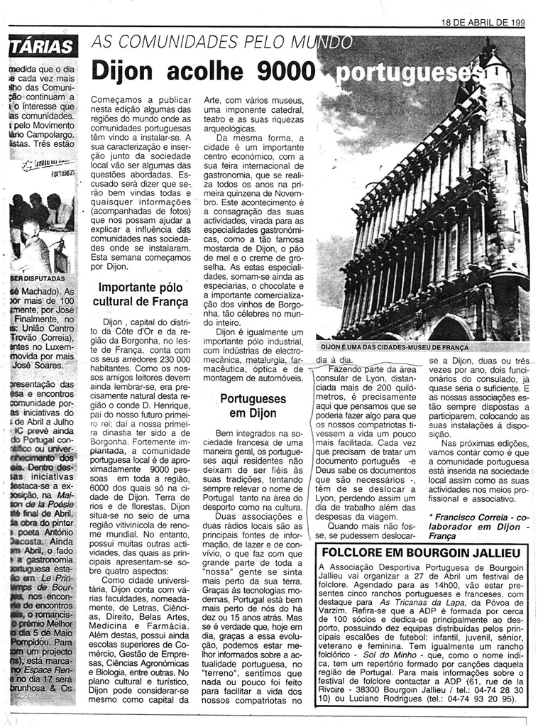 Au milieu des années 90, à travers les pages du journal Emigrante, j’ai lancé une suggestion qui semblait ambitieuse à l’époque : la création d’une présence consulaire à Dijon. L’objectif était simple mais vital : éviter que les Portugais résidant dans la région n’aient à se déplacer systématiquement pour traiter des documents essentiels.