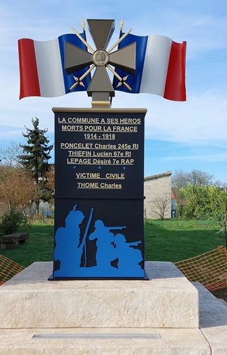 Paolo da Encarnação installe à La Ville-aux-Bois-lès-Pontavert son monument aux morts de 1914-1918
