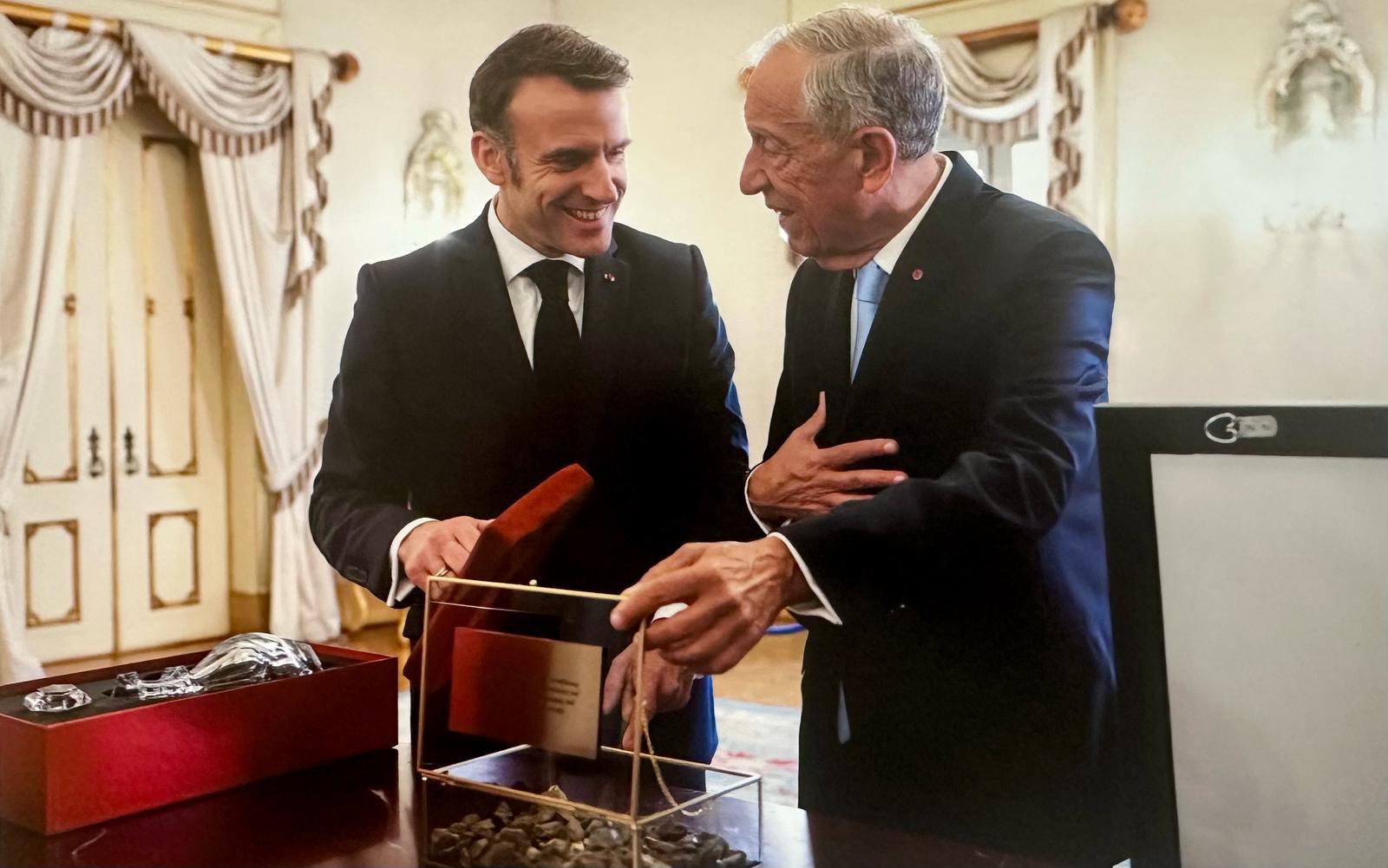 Emmanuel Macron ofereceu caixa com gravilha do Château d’Hérouville a Marcelo Rebelo de Sousa